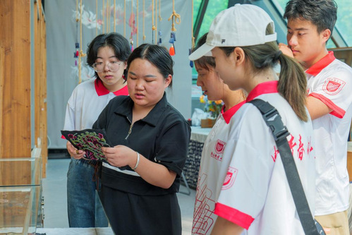 潘玉珍的女儿张艳梅被聘请为中小学苗族非遗传承教育指导老师,多年来一直进行着中小学非遗教材编写、染织教学等工作。“作为苗绣传承人,我很乐意进行传统文化教育工作,也希望能有更多的孩子愿意加入苗绣传承的队伍中来。”张艳梅女士自豪地告诉队员。师生在学习旅程中,切实感受到了苗绣的独特民族魅力与文化意义,为传统手艺人的执着、坚守而感动,进一步体会到苗绣的是民族的,更是世界的。