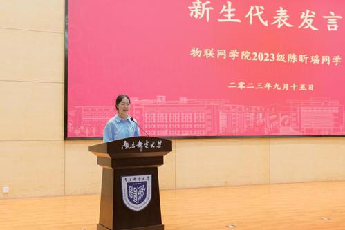 2020级网络工程专业金英哲代表高年级员工发言,他寄语小柚子们把握机会、保持自律、做好规划,在四年的老员工活中,为了成为更优秀的自己而不断努力。陈昕瑶同学代表2023级新生发言,她向学院领导老师以及学长学姐表达由衷的感谢,号召全体新生立志以奋斗之名在南邮这片广阔天地,扬帆起航、逐梦而行。2021级网络工程(分段培养)专业郭迅婕同学号召同学们拥抱机遇,做一个心中有梦、眼底有光的南邮人,以绚丽的青春之火点燃未来的征途。